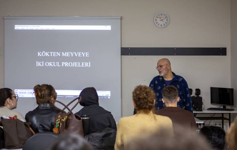 The event, enriched by the contributions of Prof. Dr. Melih Zafer Arıcan from the Faculty of Communication, concluded with a Q&A session following the screenings of the documentaries Kökten Meyveye İki Okul Projeleri and Karanlık Oda, further deepened by Modiano’s reflections and experiences.