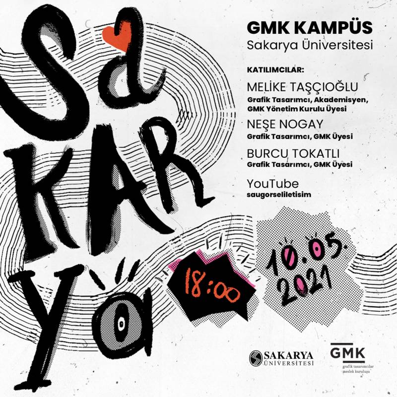 Grafik Tasarımcılar Meslek Kuruluşunun (GMK) düzenlediği "GMK Kampüs” etkinliği Sakarya Üniversitesi STMF Görsel İletişim Tasarımı Bölümü işbirliğiyle düzenleniyor. Melike Taşçıoğlu, Neşe Nogay ve Burcu Tokatlı’nın konuk olduğu GMK Kampüs 10 Mayıs 2021 Pazartesi günü saat 18.00’da SAU Görsel İletişim Tasarımı Bölümü’nün YouTube kanalından canlı olarak izlenebilir.