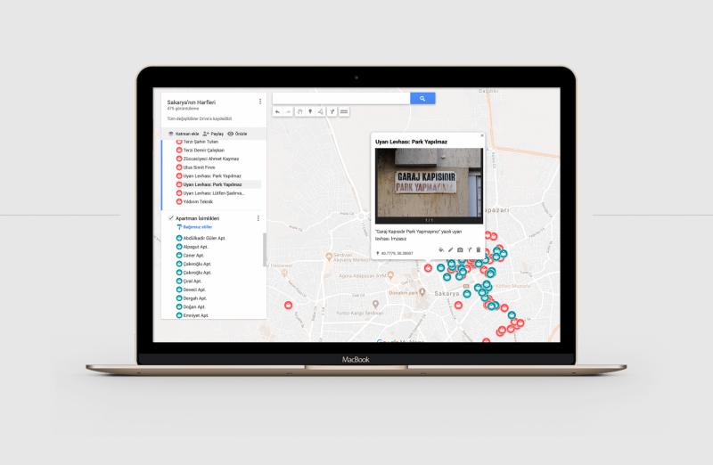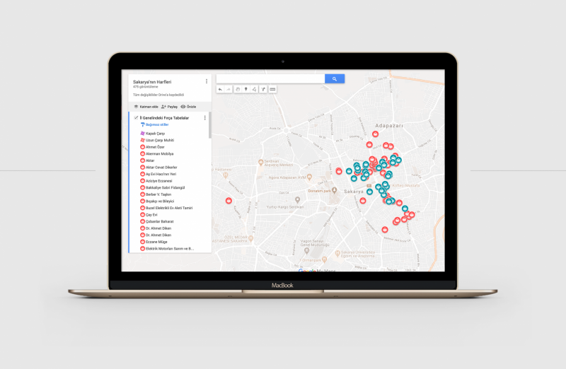 Saha araştırmasıyla elde edilen bulgular, Sakarya’nın Harfleri adlı ağ sayfasında etkileşimli bir harita üzerinde sunularak, ürünleri konum bazlı inceleme fırsatı sunuyor. Ürünler ortadan kaybolsa dahi, oluşturulan ağ sayfasıyla hangi konumda hangi ürünün bulunduğunun yıllar sonra dahi görülebildiği halka açık bir arşiv oluşturuluyor. Saha araştırması ile fotoğraflanan ürünler, zanaatkârların özgeçmişleri, yapılan video görüşmeler, yerelde kentin görsel iletişim ve tasarım tarihine katkı sunacak veriler içerdiği gibi, yıllarca açık kaynak olarak sunulacak görsel bir arşiv niteliği de taşıyor.
